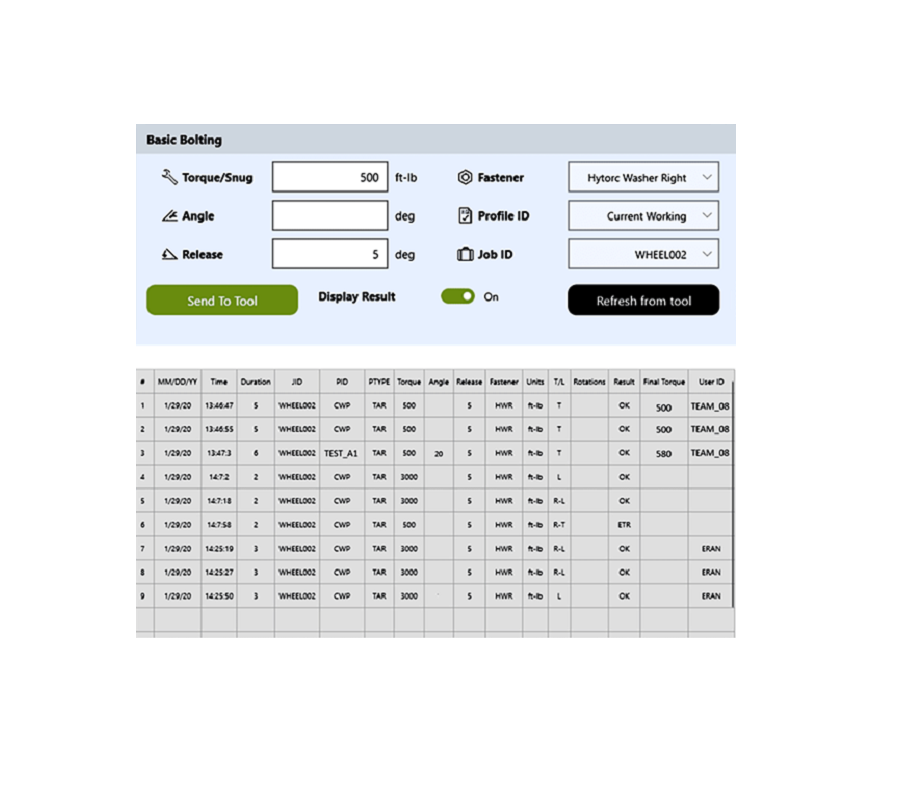 Skruvresultat kan visas i realtid för att övervaka framsteg och för att förbättra jobbkvaliten.