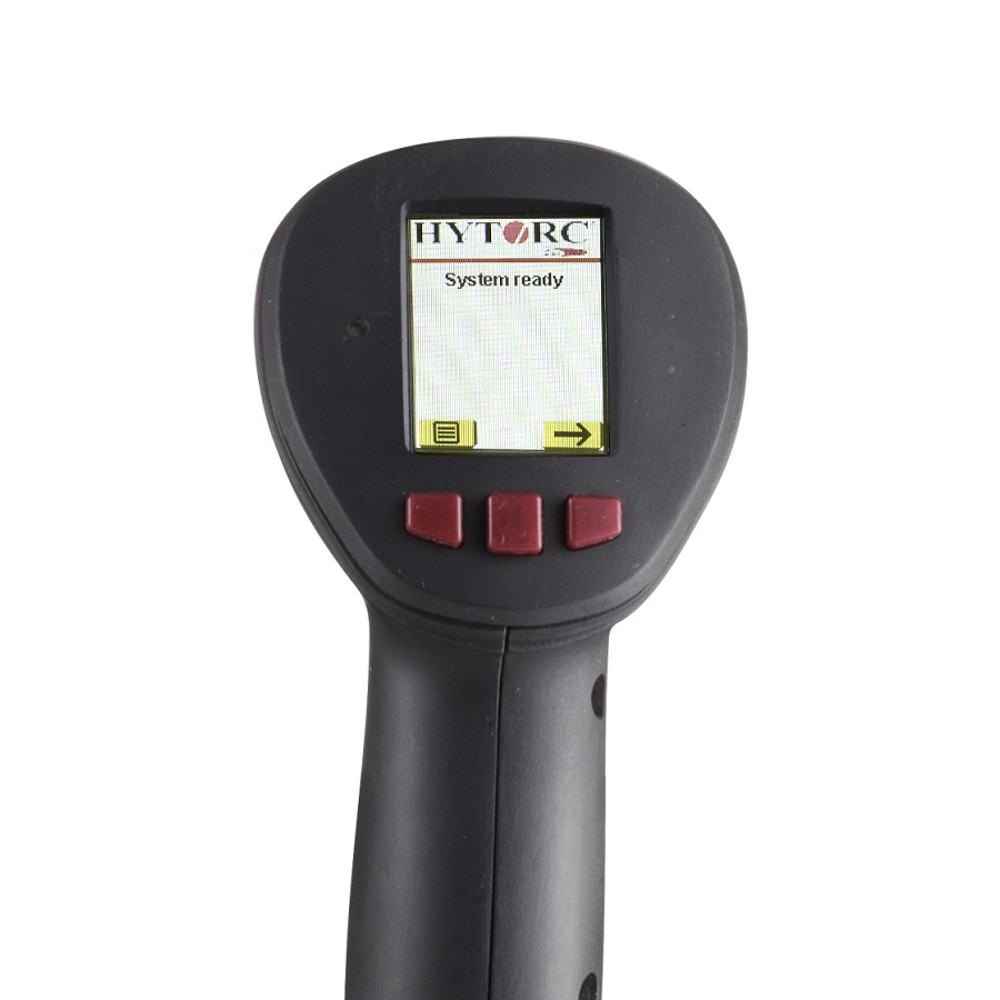 Istället för att använda en traditionell manometer väljer operatören helt enkelt det HYTORC-verktyg som används och det önskade momentet genom handkontrollen.